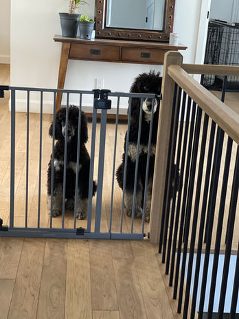 Having fallen in love with the phantom color I absolutely wanted to add one to my program. Especially since Maverick's breeder located in Michigan described him to me as a calm, attentive puppy, with an exemplary temperament. Having a litter of a few weeks at home I didn't want to take the chance of integrating a puppy from another breeder with them. So upon his arrival in Quebec, my father and his partner took him under their wings with great care. It was an instant love between handsome Maverick and his temporary housing family who quickly became his lifelong family. Like any good poodle, he likes to have fun, play ball, walk around the neighborhood and he loves walks in the mountains. Charming, very affectionate, faithful to his masters, he does honor to his breed. The handsome Maverick is a tall, slim guy at 55 pounds and 26 inches at the withers. Maverick wears different colors: cream, brown, particolor, depending on the female he can give me an interesting variety of colors.